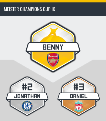 Den zweiten Sieg beim Champions Cup heimste sich Arsenal London mit Neu-Trainer Benny Lichtenstern ein. Es war – wie nicht anders zu erwarten – ein spannendes und knappes Finale. Am Ende reichte den Gunners das 1:0. Damit hat Coach Benny Lichtenstern seinen zweiten CC-Sieg errungen, nach dem Triumph beim zweiten CC 2007.